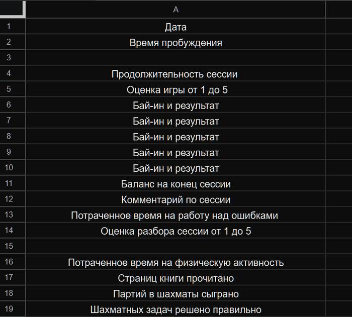 Сделал себе таблицу, чтобы еще более детально видеть, какое я ленивое 💩