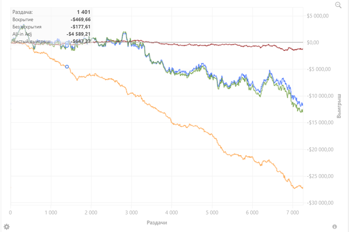 Вымучиваю дистанцию, я это количество рук с ним выбивают 3 года и это только ха, в полном столе все точно также.