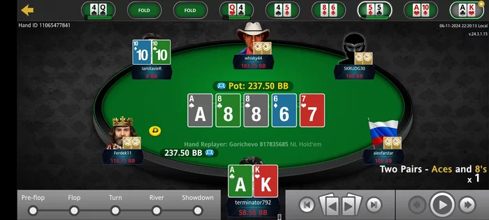 Всё здрасьте, сессия в говно, сначала поднялся на 5 БИ, потом подставы, подставы, подставы, и в итоге минус, я устал и испортил себе нервную систему на этом руме, несмотря на рейкбек, около 60 процентов, играть больше здесь не хочу, буду переходить на покердом, заказал вывод рейка, если кто играет с телефона, может рум посоветуете, типа этого, здесь можно сколько хочешь столов играть с телефона