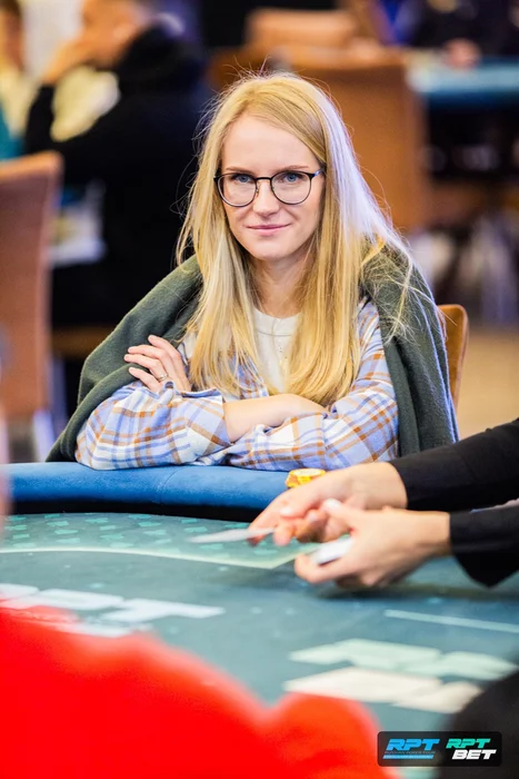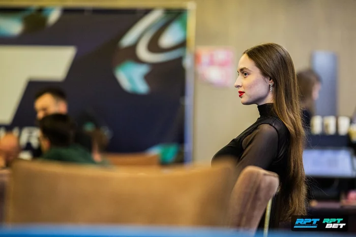 За соседним столом Илья Матусь открылся из середины 12к, Виктор Липатов запушил 16к, Екатерина Романенко следом — колл 16к. На флопе Илья сыграл чек/рейз ставки 22к до 45к и сдался на олл-ин.