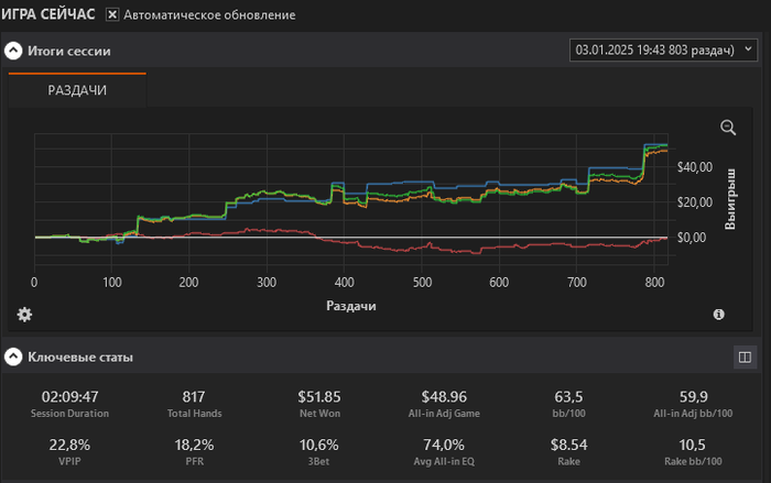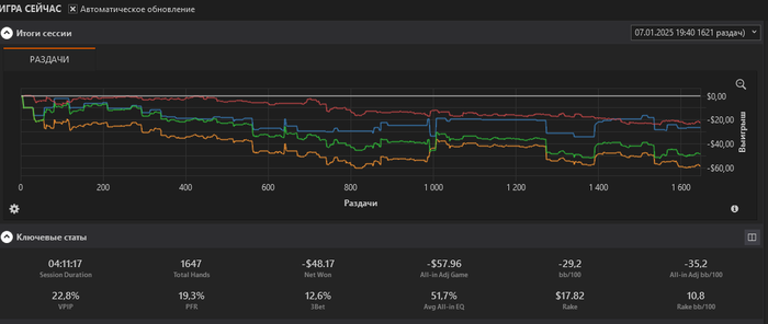 Сегодня как-то слабовато,хотя играл вечер по мск, нл10
