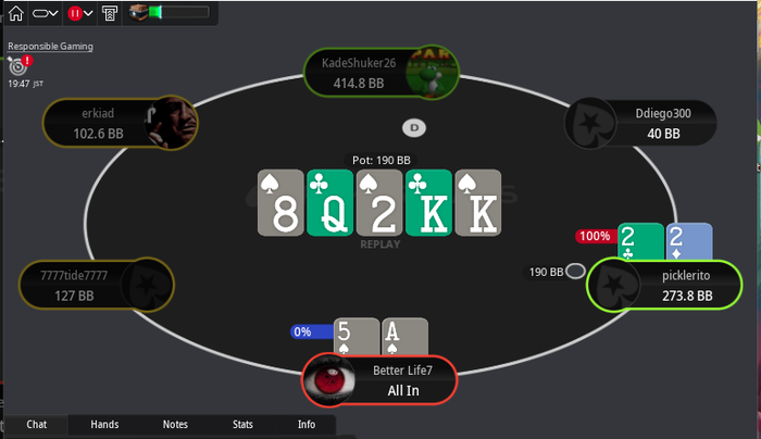 2)Играл против неизвестного,но сделал ошибку,будучи уверенным что не могут люди с утг опенить 33 и колить 3бет,исполнял на терне,думая что там только оверпары могут быть.