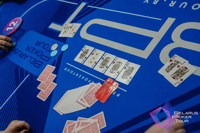 Флоп прочекали, на терне Настя поставила 4к, Руслан выбросил, а Галина запушила с флешом на , Абрамович тоже собрала флеш, но старше — .