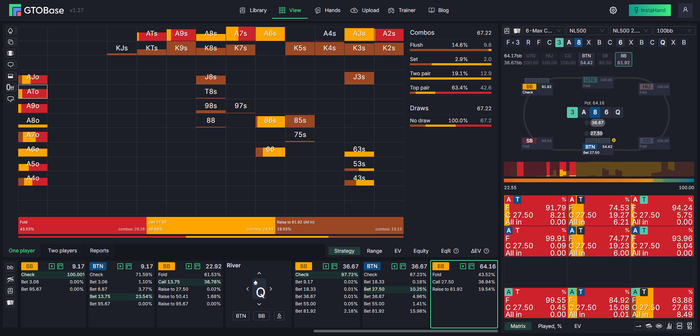 При этом в реальности мелкие Ax, которые тут солвер в кетчеры набирает, типа A4o-A7o еще по терну могут отвалиться на овербет, т.к. по полю там будет явный перекос в велью плюс какое-то хеви-дро, а не вот эти вот T9o.