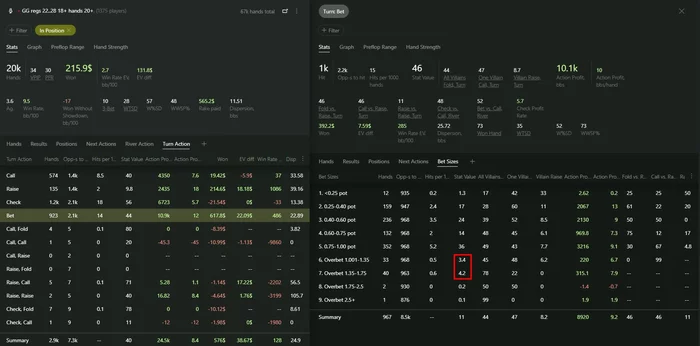 Машина терном овербетит 23% ренжа. В реальности ты такое видишь? Овербет терна случается менее 10%. Вот как опп должен придумать тебе много блефов терна, чтобы протянуть кетчер на ривер и там его бросить? Ему проще на терне оверфолднуться и на ривере уже выбивать нечего.