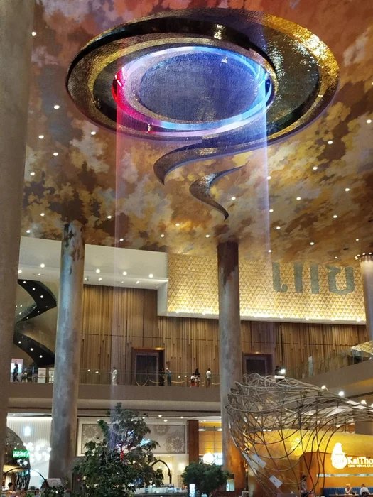 Iconsiam наверное самый популярный торговый центр в Бангкоке. Там есть шоу фонтанов, фудкорт с местной едой, водопад с потолка, терраса с видом на реку и проплывающие корабли.