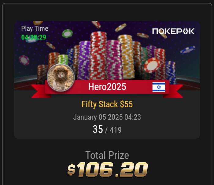 Дисциплина пошла коту под хвост, ничего не изучал, не анализировал игру, за то целую кучу часов потратил на пару турниров, чтобы заработать в итоге 26$ 😨