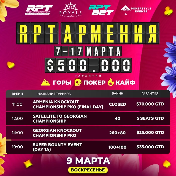 RUSSIAN POKER TOUR в Армении. Расписание на 9 марта:
