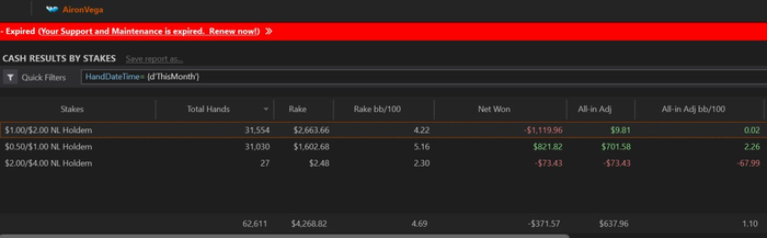 метод с парами cash-in - cash-out не учитывает ребаи за столом. если ты сделал бай-ин и потом кешаут - четное количество транзакций, вопросов нет. если ты сделал би, ребай и кешаут, то би теряется из-за нечетности транзакций и выводится как потерянная транзакция. надо вручную все перепроверять по итогу, либо ждать сообщение от саппорта что мы покеристы, которые считать до 3х не умеем)