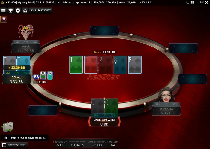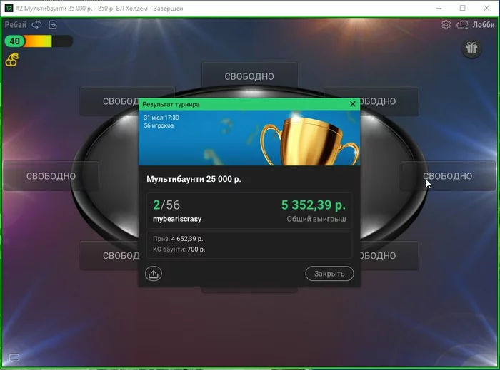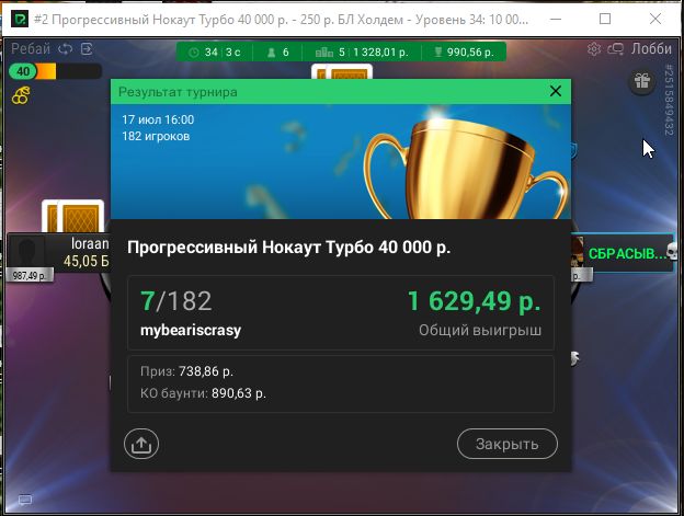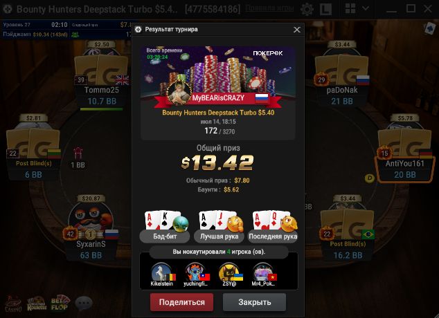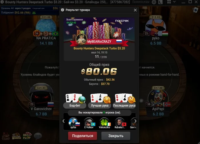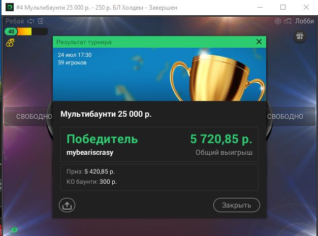 Вчера открыл сессию, запустил 6 турниров и во всех удалось далекой пройти.