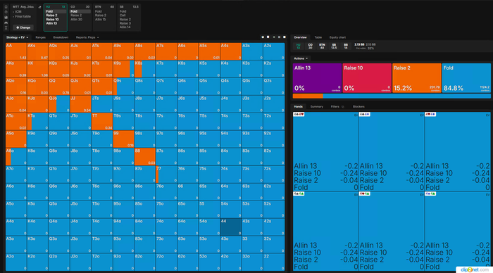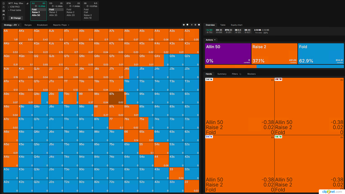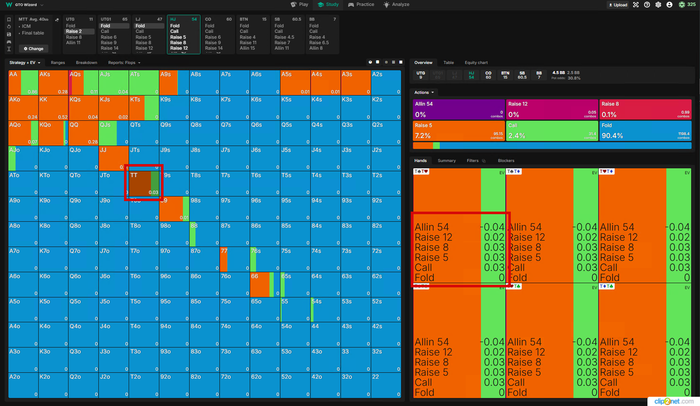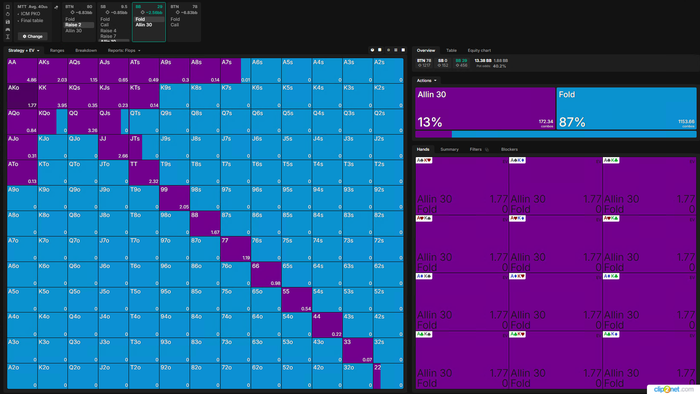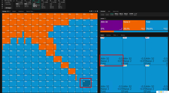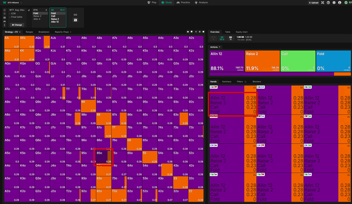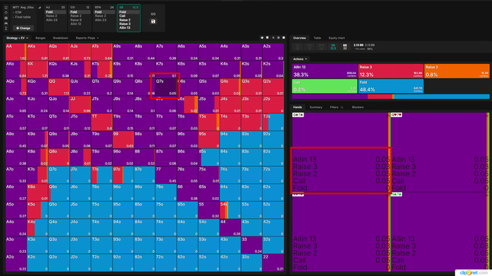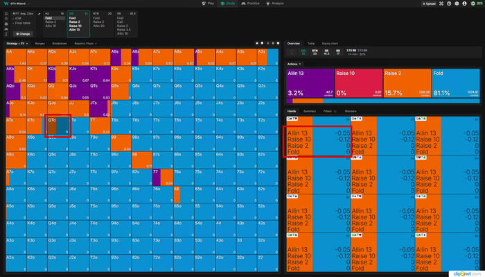 Тут Визард хочет чаще пушить, реже рейзить, я бы рейзил в 100% и выбрасывал на АллИн так как на Батоне все тот же фиш.