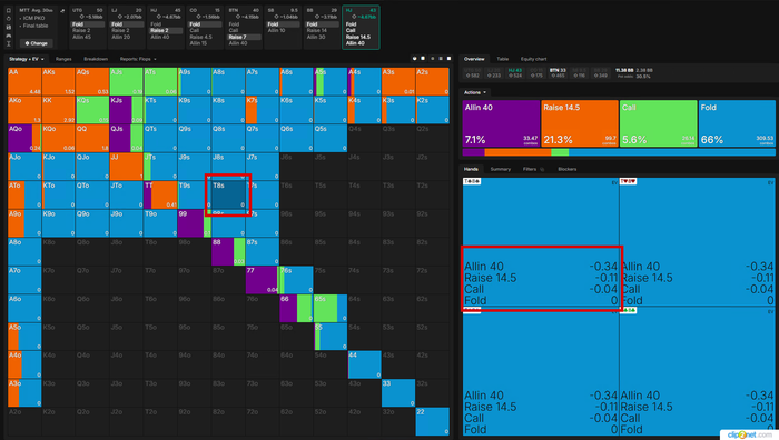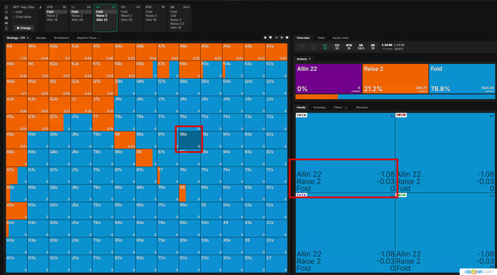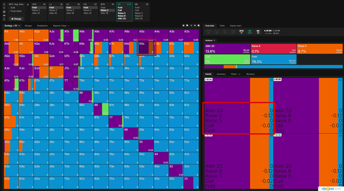 КJо тут максимально пограничная рука, играется в ноль при любых действиях, поэтому играем только отталкиваясь от статистики на ОППов!!!🤓