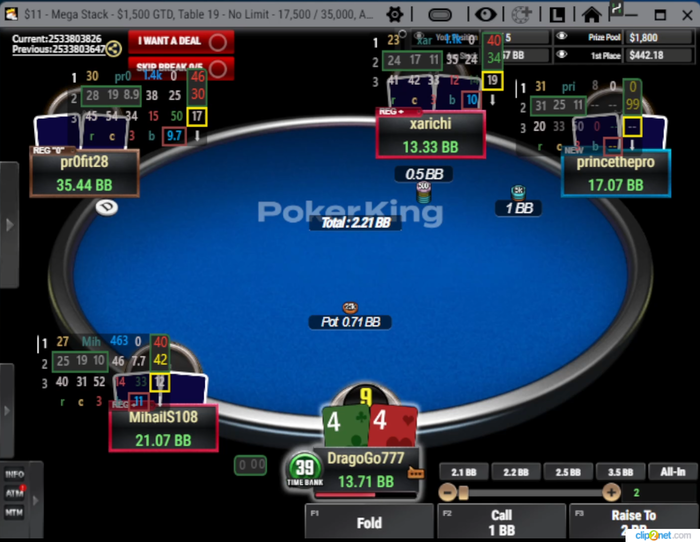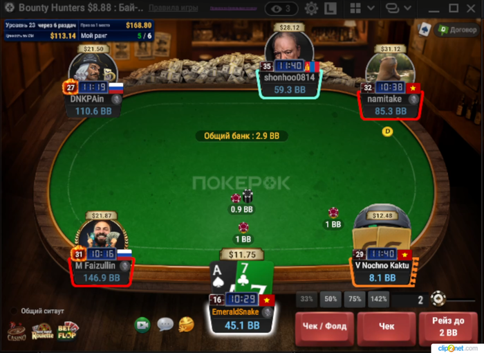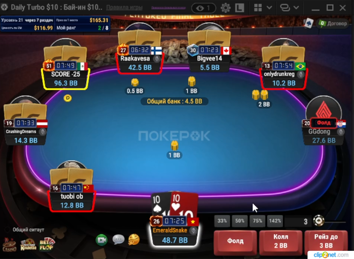 ну для начала хочу сказать что лучшее действие в такой низкий флоп с нашей рукой будет ДОНК 33%🤓