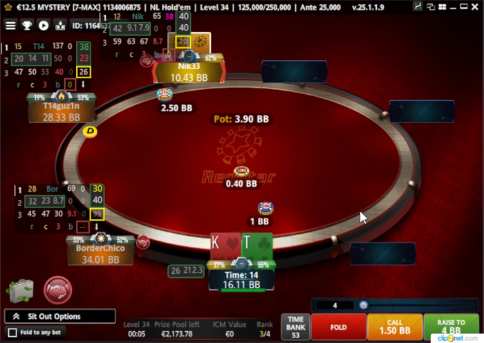 Пограничная рука и ПАСС и РЕЙЗ имеют одинаковое ЕВ, поэтому выбираем действие опираясь на соперников🧐