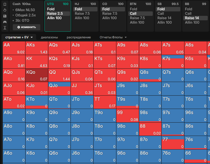 Солвер 66 вообще не ценит, открывает просто для разнообразия животного мира и балансировки своего велью, чтобы было откуда блефы набирать (придется порой жарить до талого в отвратнейшие доски в расчете только на ФЭ, чтобы забрать свою крохотулечную долю банка. яиц всегда ли хватит? понимания, когда это требуется делать, а когда это окажется огромным переблефом? правильно ли прочтем доску и выберем допустимый сайз блефа? если переборщим, то блефам начнет не хватать ФЭ). Этот стартер выдается в 2 раза реже, чем KQo. Мы миллионы рук должны наиграть, чтобы убедиться, что хотя бы в ноль можно сыграть (никто не отменял кулера в старшие сеты, стриты, флеши, поднырки в 3бп).