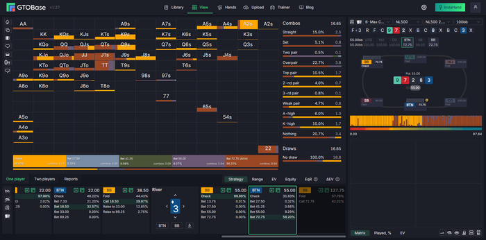 За основу проще взять солверные чарты, выкинув низы, которые некомфортны на данном этапе. Если какая-то рука в чарте демонстрирует прибыльность в жесточайшем противостоянии машин (а люди по агрессии вообще никакие), то в человеческом поле она уж как-то сумеет свой плюс собрать, если совсем деревянным не быть.