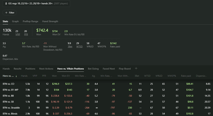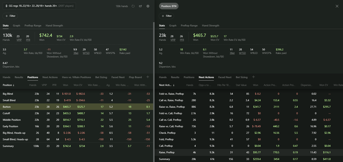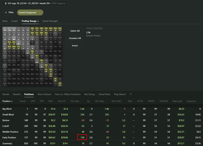 Это надо свою школу/конюшню иметь и собрать с учеников десятки миллионов рук, чтобы по их выборке с открытыми картами уже что-то да построить. Либо, найти базу слитую из какого-нить покеррума.