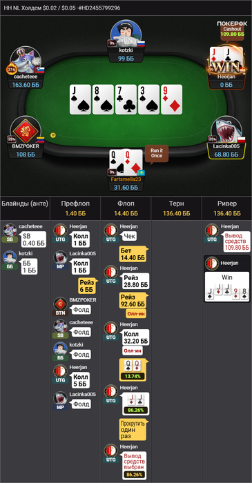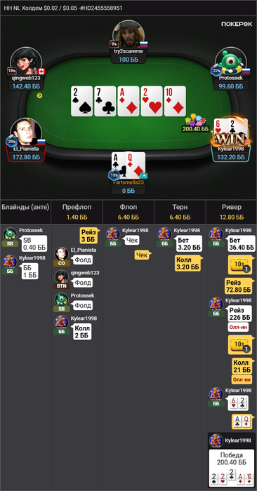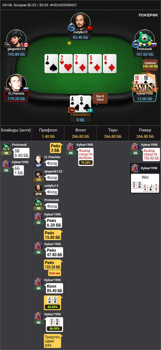 После того как я в хз какой раз увидел не свой флоп я уже не выдержал, я знал что у него плохой туз, и то что я мог бы в теории его выбить, но увы. Мб это и выборочная память, то что мне не дают норм флоп нихуя.