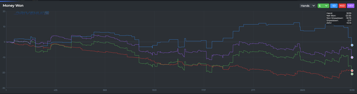 Fartsmella23, слишком тайтово. Я сначала тоже так играл, даже более нитово, по итогу недобирал массу эквити. В идеале довести до 23/18, это мне тренер с форума показал, где я недобираю, а где переигрываю свои руки, я как раз искал, кто может за дешево объяснить базовые вещи и у меня пошла игра. Я годами играл в свое удовольствие около нуля, но после 2-х уроков у меня прям глаза открылись и пошло. Даже, если это твое хобби гораздо приятнее играть в плюс. Если интересно могу написать к кому обратиться, кто объяснит сложные вещи простым языком.