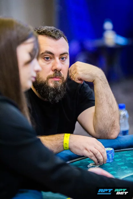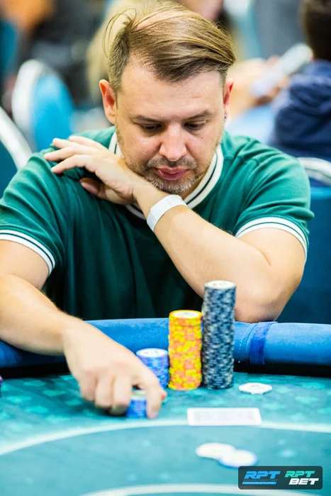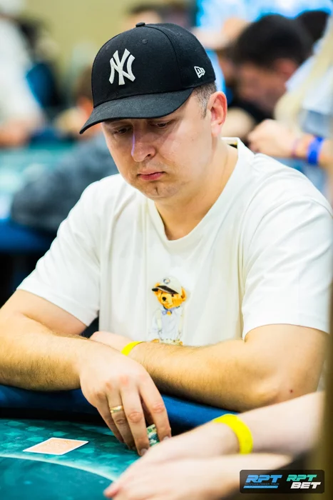 Андрей Стрижевский удвоил совсем короткий стек 70к с против Сергея Соколова. Устоял на доске .