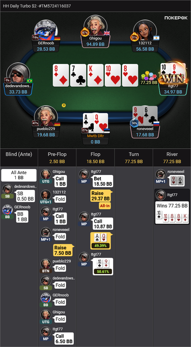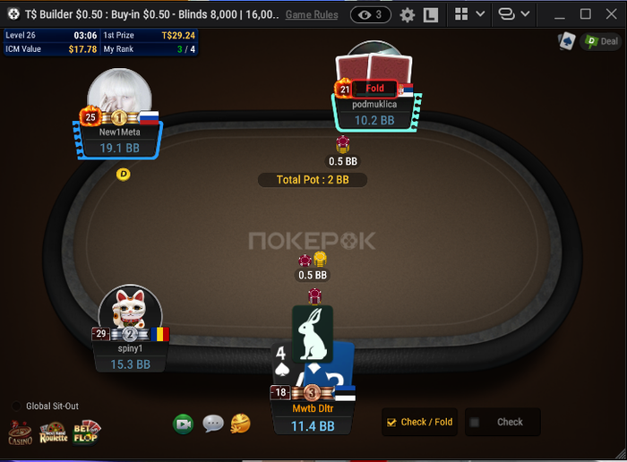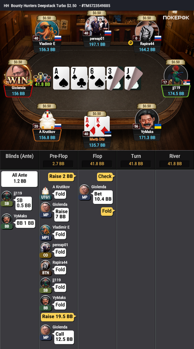 Хотел набрать рейз ближе к 70% банка, но мисскликнул и жмакнул фолд. 🤪