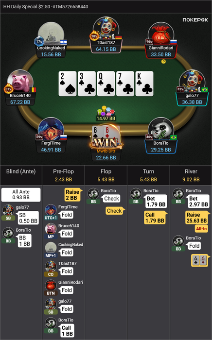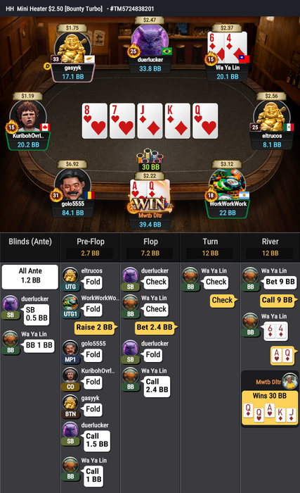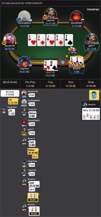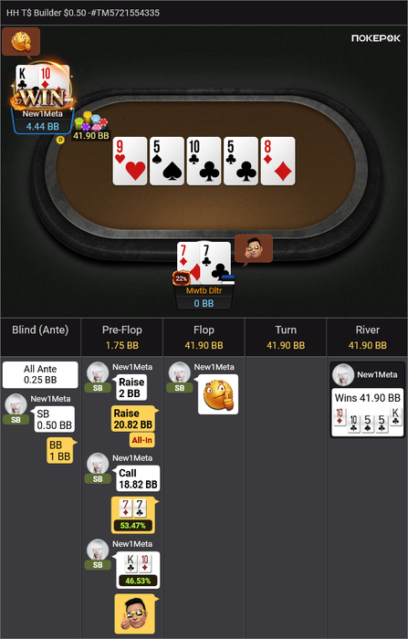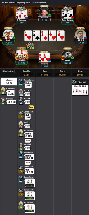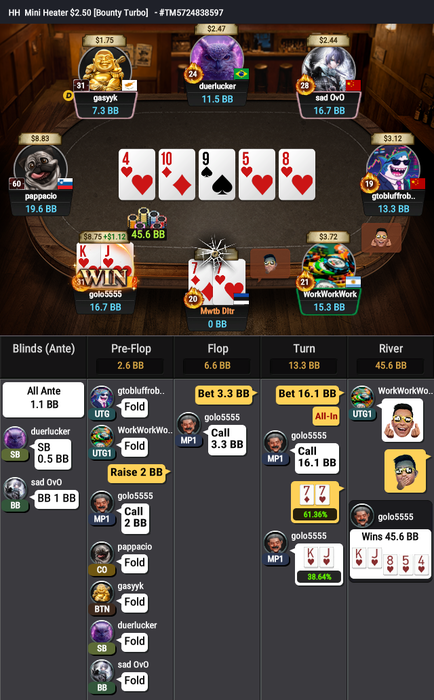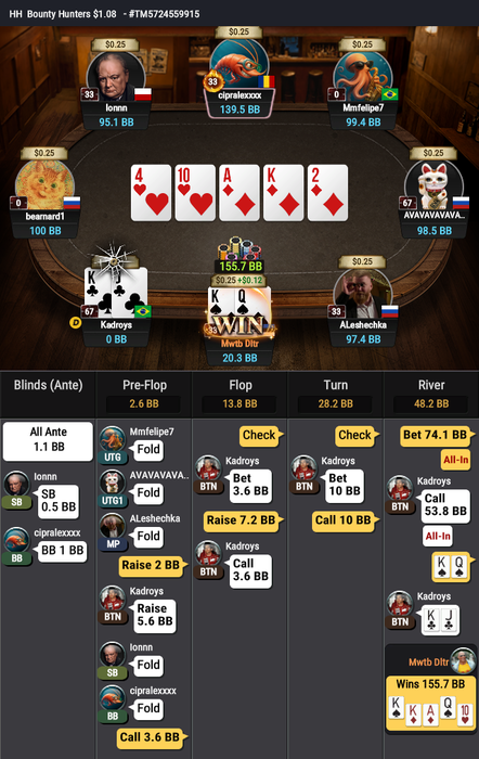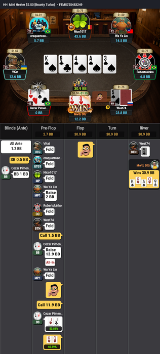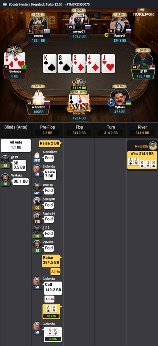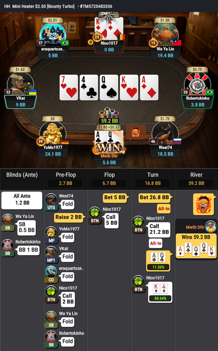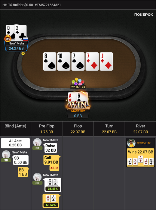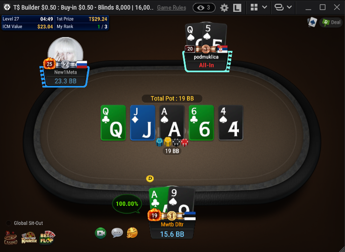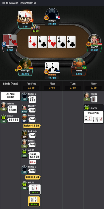 И последнее выставление префлоп проиграл: