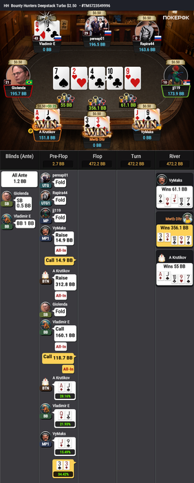 Зато следом у них сразу тройной аллин с голимыми картами: