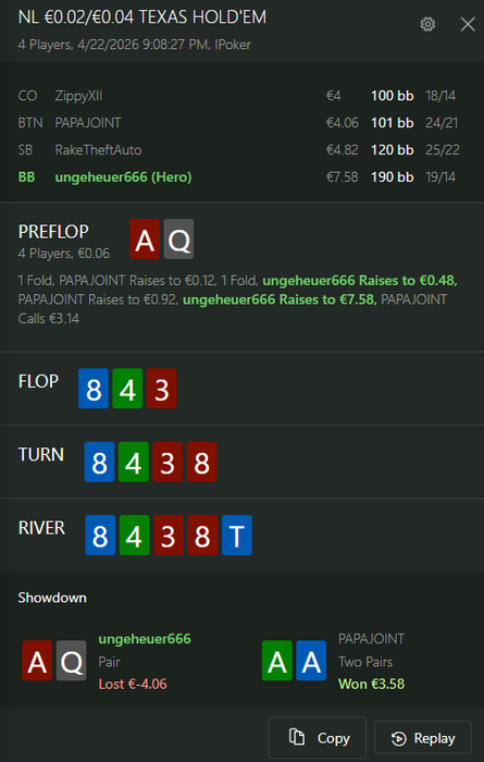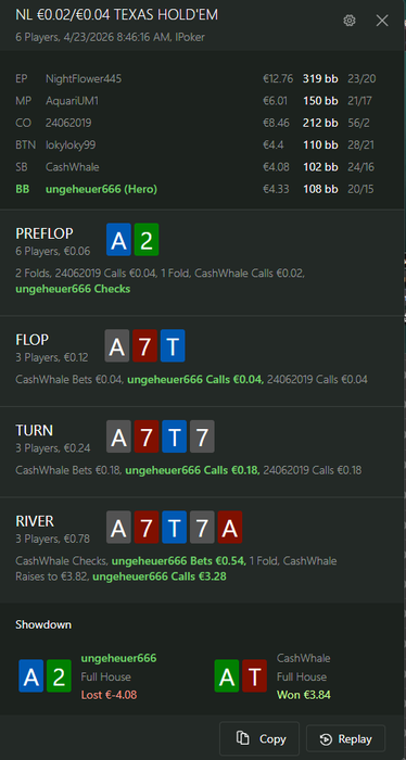 вот я залил 2 би на ред старе сегодня,не понравилось,как моя игра так и то в целом что я делал,такие тупые мувы,один стек просто оппу отдал потому что он агро игрок был и я вколил его префлоп пуш с А10 s