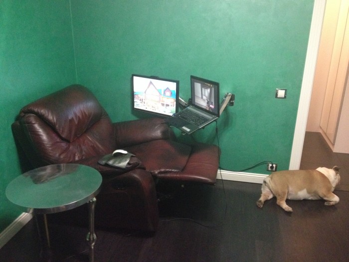 Вот только системник должен стоять справа. Правило ставить системник слева пошло от старых времен совковых компьютерных столов, в котором отсек для корпуса в 90%+ "моделей" был слева, так люди и привыкли. На знаю кто придумал такое нелепое правило, логики в нем нет. Крышка корпуса расположена слева и если ставить системник как на картинке, то во во первых: ее нельзя будет открыть, не сдвинув корпус, а во вторых: многие современные корпуса имеют перфорацию на крышке, которая играет заметную роль в вентиляции.