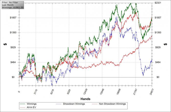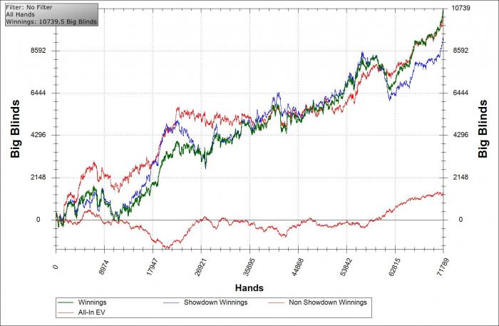 Сделал пару фильтров и понял,что за 12к разадач, у меня было 2-3 блефа. А винрейт 35бб на 100рук.