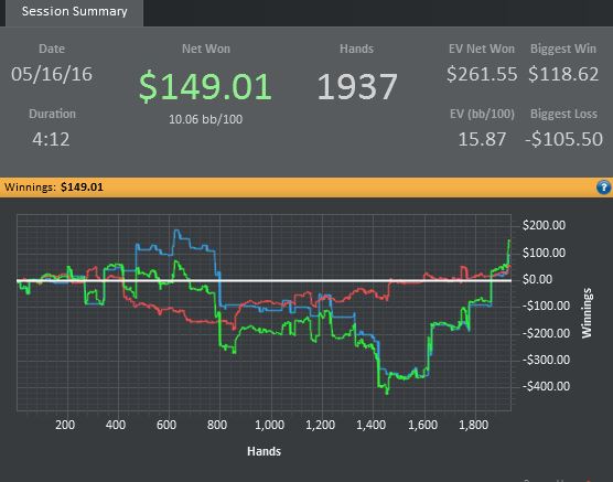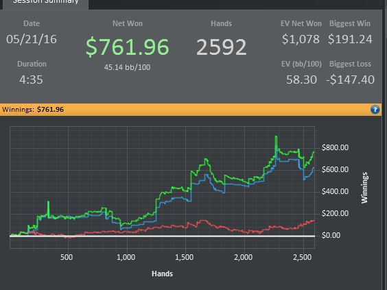 Atmixx @ 21.5.2016 Надеюсь результаты этого месяца это не только апстрик, но и в какой-то мере результат того, что я пусть и медленно, но меняю отношение к покеру в целом... Посмотрел несколько водов, взял одну тренировку, стараюсь не лудить и не отвлекаться... Вообще на все это у меня есть довольно весомая причина в виде ситуации на основной работе. С каждым днем я чувствую что просто не могу больше в этом всем вариться и готовлю пути к отступлению.