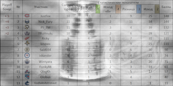 А вот таблица тура.