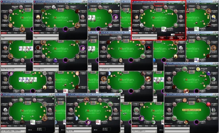 Очередной сет начался забавно: едва открылось 3 стола, как в одном турнире я уже выставился с АА против КК, увидел короля на ривере и столов снова стало 2