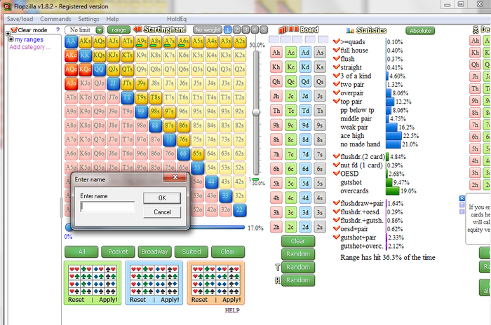 Например я смотрел видео по флопзилле и там автор (Мэтью Джанда) использовал уже готовый диапазон прфлоп рейза с МP, который он ранее туда забивал и сохранил,как это сделать?