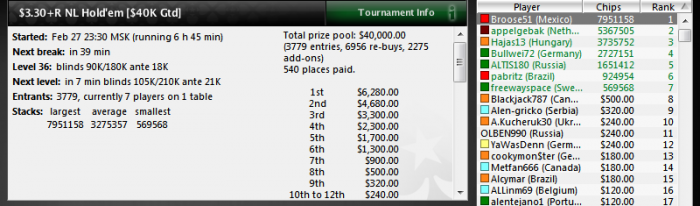 Poker Stars, $3 Buy-in (5,000/10,000 blinds, 1,000 ante) No Limit Hold'em Tournament, 9 Players
