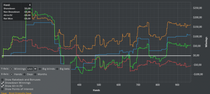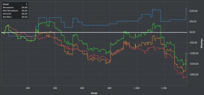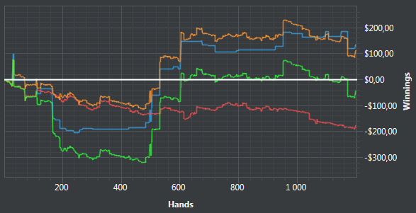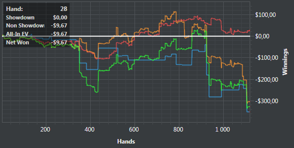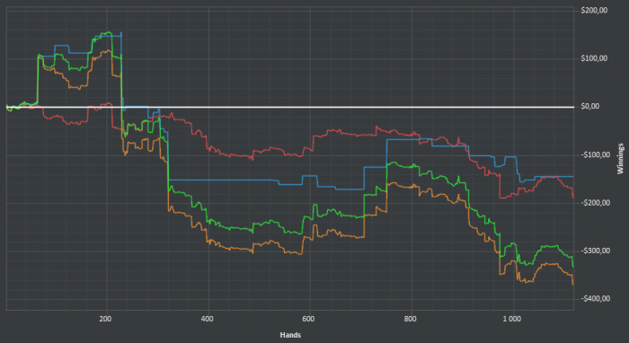 День 5. Вчера, после того как доиграл вторую сессию, долго еще сидел и разбирал игру, устал и даже забыл написать отчет. Поэтому отчет за сегодня и вчера. Вчера: Сегодня Раздают ужасно, постоянно упираюсь в натсы, пробую сохранять спокойствие и играть в свою обычную игру.