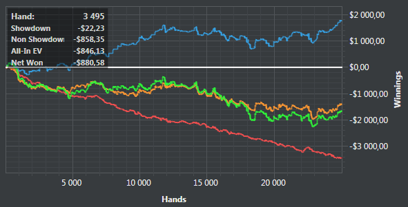 Если бы моя девушка не спросила сегодня буду ли я завтра отдыхать, я бы и дальше думал что мне осталось доиграть еще 1 день марафона)) Оказалось, что второй день марафона я запостил 2 раза и изза этого все перепутал))) Это были хорошие новости, теперь о плохом: Результатом расстроен, качеством игры тоже. Все время пытаюсь "изобрести велосипед" на блинах что б уменьшить залив, и с каждой попыткой что-то изменить залив увелиииииииичииииииивааааааааааааеться. Это были плохие новости, а теперь снова о хороших: Я не собираюсь сдаваться! В конце сессии меня посетила "очередная" очень крутая идея по поводу игры на блайндах. Но, на этот раз, она настолько крутая, что я в шоке немного от того насколько она простая и в это же время сложная))). Это раз. И два - отыгрывая много рук, появляеться возможность анализировать свежую хендхистори и наблюдать/коректировать изменения в игре практически в реальном времени. Поэтому гриндзадроство продолжаеться Три. Приятно увидеть отзывы двух совершенно незнакомых мне людей, которым стало интересно прочитать мой дневник. И напоследок, дорогие читатели, если вы дочитали эту воодушевленную записку расстроеного результатом, но окрыленного идеей упертого фиша, просто хочеться сказать спасибо вам за поддержку, оставайтесь хорошими людьми и хорошего всем настроения.
