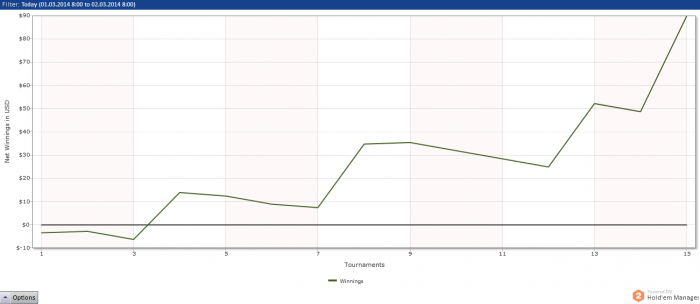 Возобновил блог во многом потому, что мазанулись с другом: если я за март сделаю огромный профит в 300 баксов, то он угощает Хэннеси. Если нет – то я. Он не очень верит, что покер отличается от рулетки, а мне и самому охота проверить =()