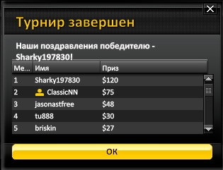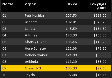 * 50 % призового фонда распределяется в равных частях среди всех оставшихся игроков.