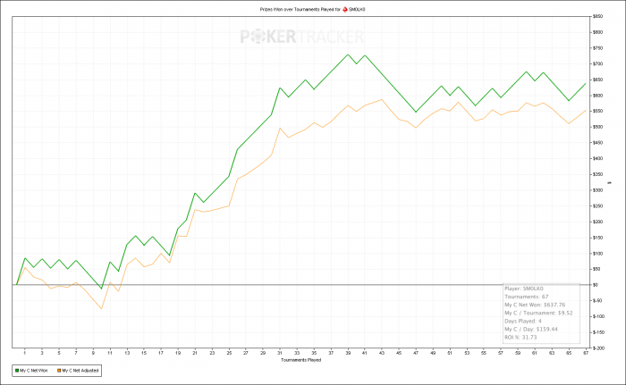 PokerStars - $28.78+$1.22|30/60 NL (2 max) - Holdem - 2 playersHand converted by PokerTracker 4RoyalTS21 (SB): 1,589 (VPIP: 81.25, PFR: 37.50, 3Bet Preflop: 14.29, Hands: 41)