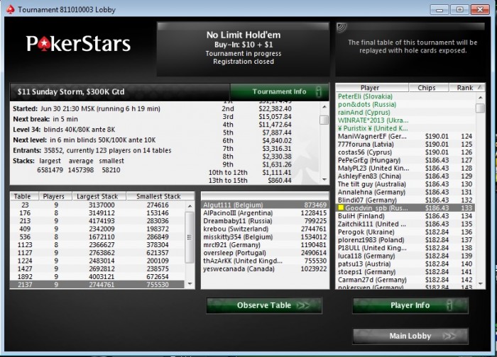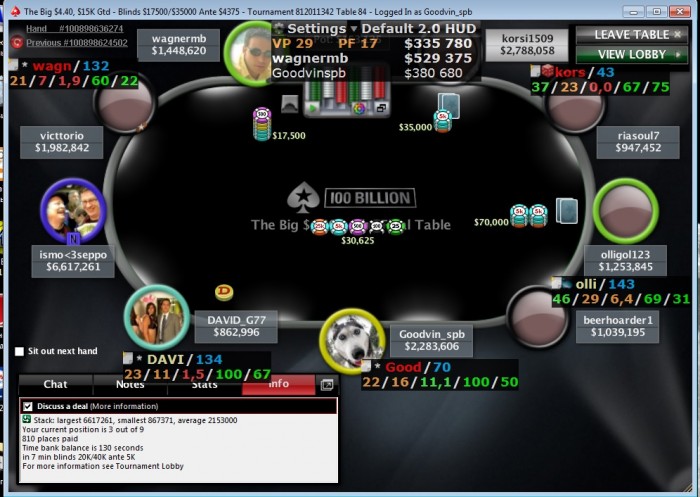 чутка плюсанул сегодня,еще осталось 2 турика...предфиналка дабл стека за 33$ и на пс big за 4,осталось 90 тел иду 2 аура приветствуется ник goodvin_spb