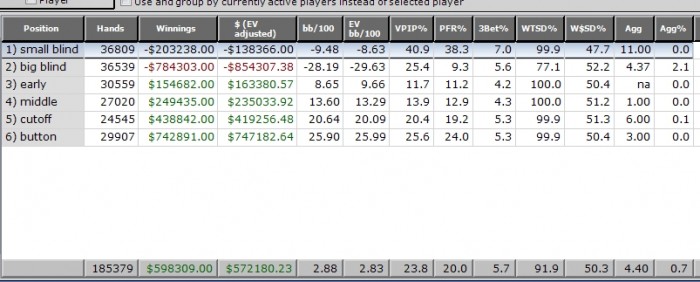 Я в 6максе только саты играл. На дорогих приемлем от -2 до 3. Пробовал в агро стиле сначала (юыло почти 5бб/100) - херово, так что слишком высокий показатель бб/100 тоже плохо.
