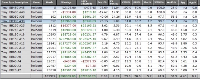 это норм для 1.5 лимита. Вполне может быть, что для этого лимита и минусовый бб/100 довольно хорошо. Фишка в том, что агрессивные фиши сами друг друга выбивают (принимая пуши на А2 от раннего, ебанутые коллы на бабблах и т.п.) - - здесь игра идёт на ИТМ. Зачастую 0.6 лучше, чем 5 бб/100 на данном лимите.