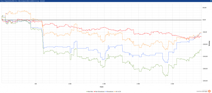До сих пор не могу понять как этот EV считает. Вроде на пальцах все понятно, засчитываются только те раздачи где игроки пошли в олын, однако, в большинстве случаев скидываешь карту из-за ухудшившейся структуры доски или действий оппонента. Это получается в зачет не идет.