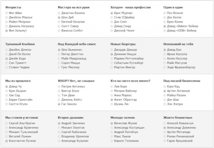 По 5 участвуют: Valery63+, svetikz+, badplayer+, laisserg+, _Noname_+, VeryAggFish+, loh+, pikul1980+, Oksamyt+, Imprez+, Fred+, newcccp+, barankatica+, kemg+, Skyracer976+, Serafim, patriot1991+, fragonique, lmofol, Quisy, pass140, TheShadowfil, povarovec