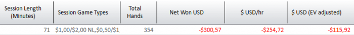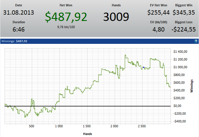 4) Хороший банкролл. Это может быть не только психологической проблемой, но и математической. Пошёл с 30 би, залил 10 (многие испытывают даже большие колебания в пределах одной сессии), по хорошему нужно спускаться уже на два лимита сразу, теряется куча времени, которое можно пристроить с гораздо большей пользой, чем купить сомнительный опыт.