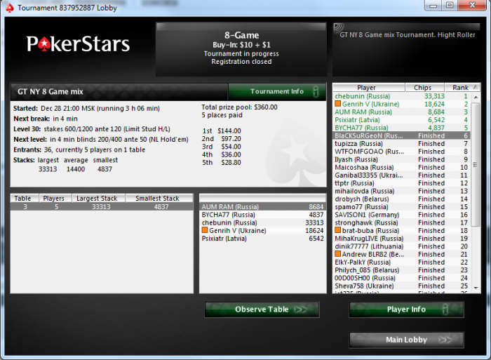 Final Pot: 36.5 BB