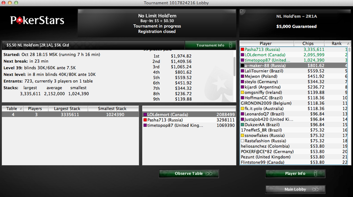 В целом пока складывается не очень, но в $5[2R1A] двое приятных парней решили меня подбодрить и подарили 400бб в начале турнира)