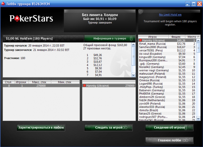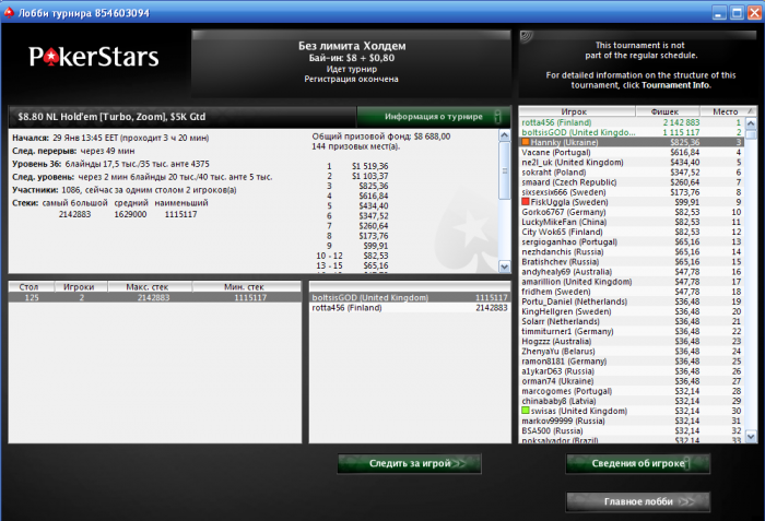 Бля) хотя бы топ-4 ) ну ладно пусть будет так Был самым коротким (неподумайте не нитом) 10бб пуш 44<А10 Вечером долблю $4.50 180max, может еще успею марафон закончить успешно !