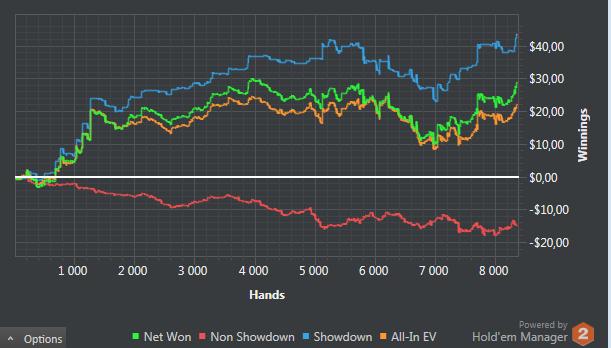 Старался отбиться, но хуй там) После 10к рук пошел на зум 6макс, на нем красная улетела потому что играл чисто от карты, иии почти отбился, но потом надавали по башке Вроде как даже норм играл, хз как умудрился 11 стеков залить